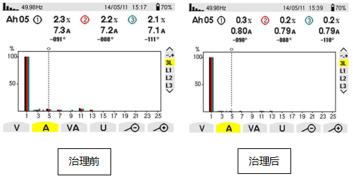 江西某水利局供電系統(tǒng)存在大量的諧波源負(fù)載:整流還原爐(12脈)、制氫設(shè)備(12脈)、可控硅調(diào)溫設(shè)備(6脈)、UPS設(shè)備(6脈)等,這就使得在該供電體統(tǒng)中存在大量的諧波電流,諧波電流主要以5、7、11、13次為主;大量諧波的存在嚴(yán)重干擾了其他負(fù)載的安全運行、產(chǎn)生計量誤差、影響設(shè)備使用壽命。