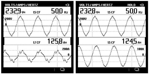 根據(jù)我司技術(shù)人員的測試分析后,決定安裝7臺有源電力濾波器分別用在兩個配電室:一號配電室兩臺,二號配電室5臺,每臺濾波器對應(yīng)一條“打葉線”,這樣的配置就可以達到有效抑制諧波,改善電網(wǎng)電能質(zhì)量的目的。治理效果如下圖所示: